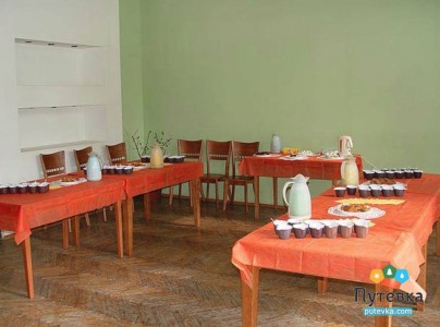 Трёхразовое питание по заказному меню (выбор из двух блюд) предоставляется отдыхающим в обеденном зале столовой, которая находится в отдельном здании. Для тех, кто нуждается в специальном питании, есть диетические столы.