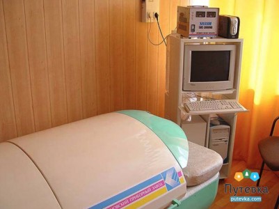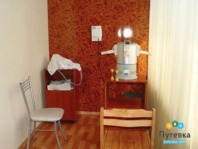 Процедуры: озокеритотерапия ; амплипульстерапия ; дарсонвализация ; биоптрон-свет ; ванны вихревые ; массаж лечебно-профилактический ; увч-терапия (ультравысокочастотная терапия) ; орошение минеральной водой ; ингаляционная терапия ; прессотерапия (аппаратный лимфодренажный массаж, компрессионный массаж, пневмомассаж) ; гидроколонотерапия ; грязевые аппликации ; ванна ароматическая ; ванны сероводородные ; ванны хлоридно-натриевые (или солевые) ; ванны йодобромные ; гальванизация и электрофорез ; лекарственный электрофорез ; душ шарко ; лазеротерапия ; гидромассаж ; магнитотерапия ; ультразвуковая терапия и ультрафонофорез лекарственных средств ; иглорефлексотерапия (иглоукалывание, акупунктура) ; электросон (нейросон, электроанальгезия) ; галотерапия/спелеотерапия ; . Процедуры назначает врач Санатория после обследования в первый день. Вы можете высказать свои пожелания, но последнее слово всегда остается за доктором.