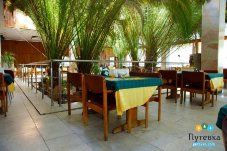 Отдыхающие получают трёхразовое питание по заказному диетическому меню. В центре обеденного зала, подобно прекрасному оазису, расположен зимний сад.
