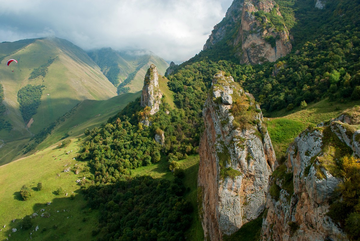 Это действительно одно из самых необычных ущелий Кавказа. Его узкие теснины чередуются с широкими, залитыми солнцем, долинами. Знаменито ущелье природными памятниками — водопадами, источниками и пещерами, часть из которых вы увидите в поездке. В программе будет знаменитая Чегемская теснина — Су-Аузу, которая врезается в Скалистый хребет и, извиваясь, проходит его известняковое тело. Ширина теснины местами не превышает 20 метров, в то время как стены обеих ее сторон уходят ввысь на 500-800 метров! Кроме того, я отвезу вас к впечатляющим Чегемским водопадам, которые еще совсем недавно называли «Шау-Денла», или «Стена водопадов».